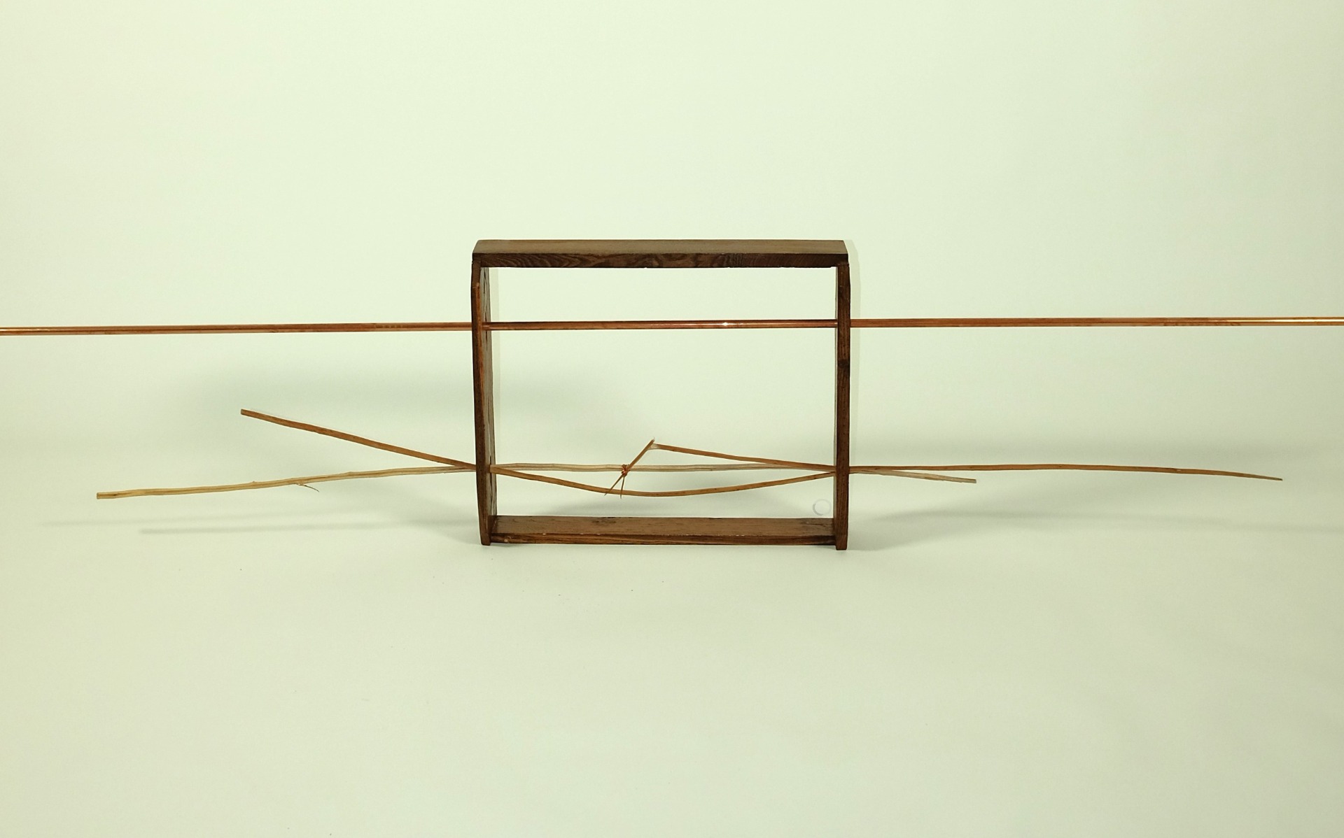 GAVETA, 2024. Cobre, videira e gaveta de madeira, 200cm x 50cm.