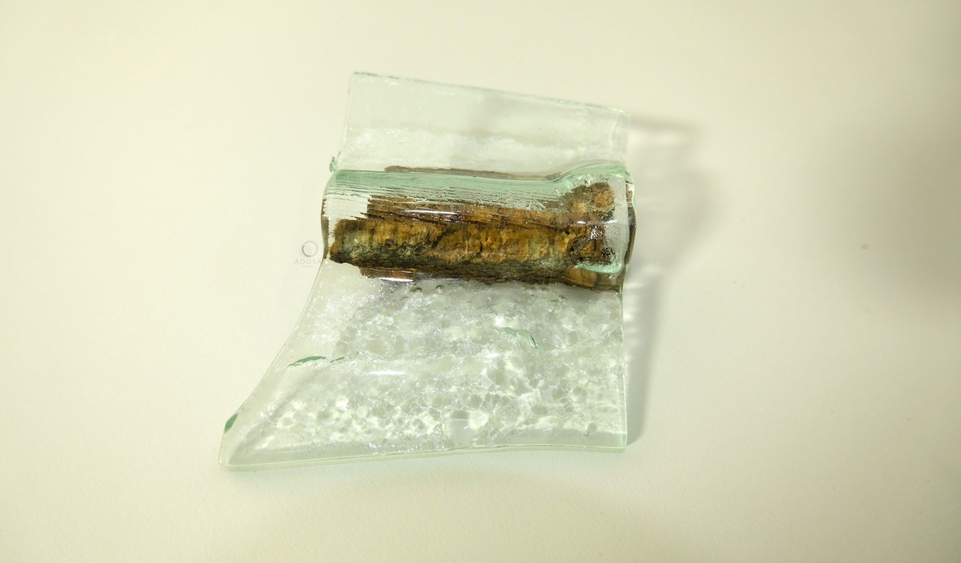 Em Eixo Frágil da Existência, Adosa transforma a coluna vertebral — símbolo máximo de suporte e estrutura — numa forma que desafia a lógica do corpo: um esqueleto feito de vidro. Não é uma coluna comum; é um organismo impossível, vulnerável e luminoso, que torna visível a fragilidade que atravessa a existência humana, a vida e a própria condição do planeta.